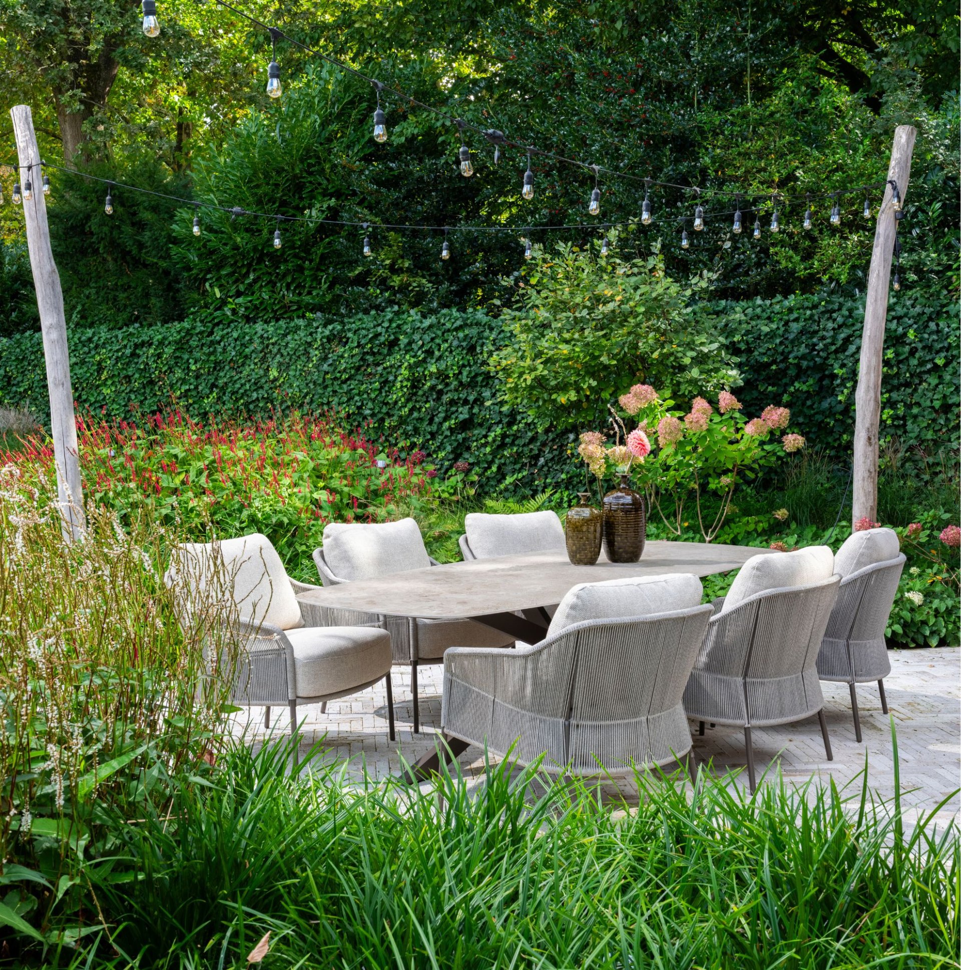 Inspired by the timeless charm of Italy. Florence is characterized by the tightly woven rope pattern and the refined split between the backrest and seat, creating a modern and elegant effect. The comfortable cushions offer excellent seating comfort, making this serie perfect for long, relaxing moments outdoors.