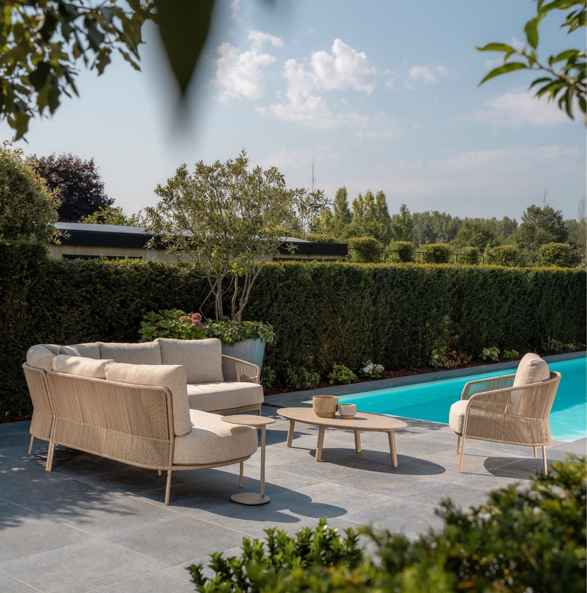 Inspired by the timeless charm of Italy. Florence is characterized by the tightly woven rope pattern and the refined split between the backrest and seat, creating a modern and elegant effect. The comfortable cushions offer excellent seating comfort, making this serie perfect for long, relaxing moments outdoors.