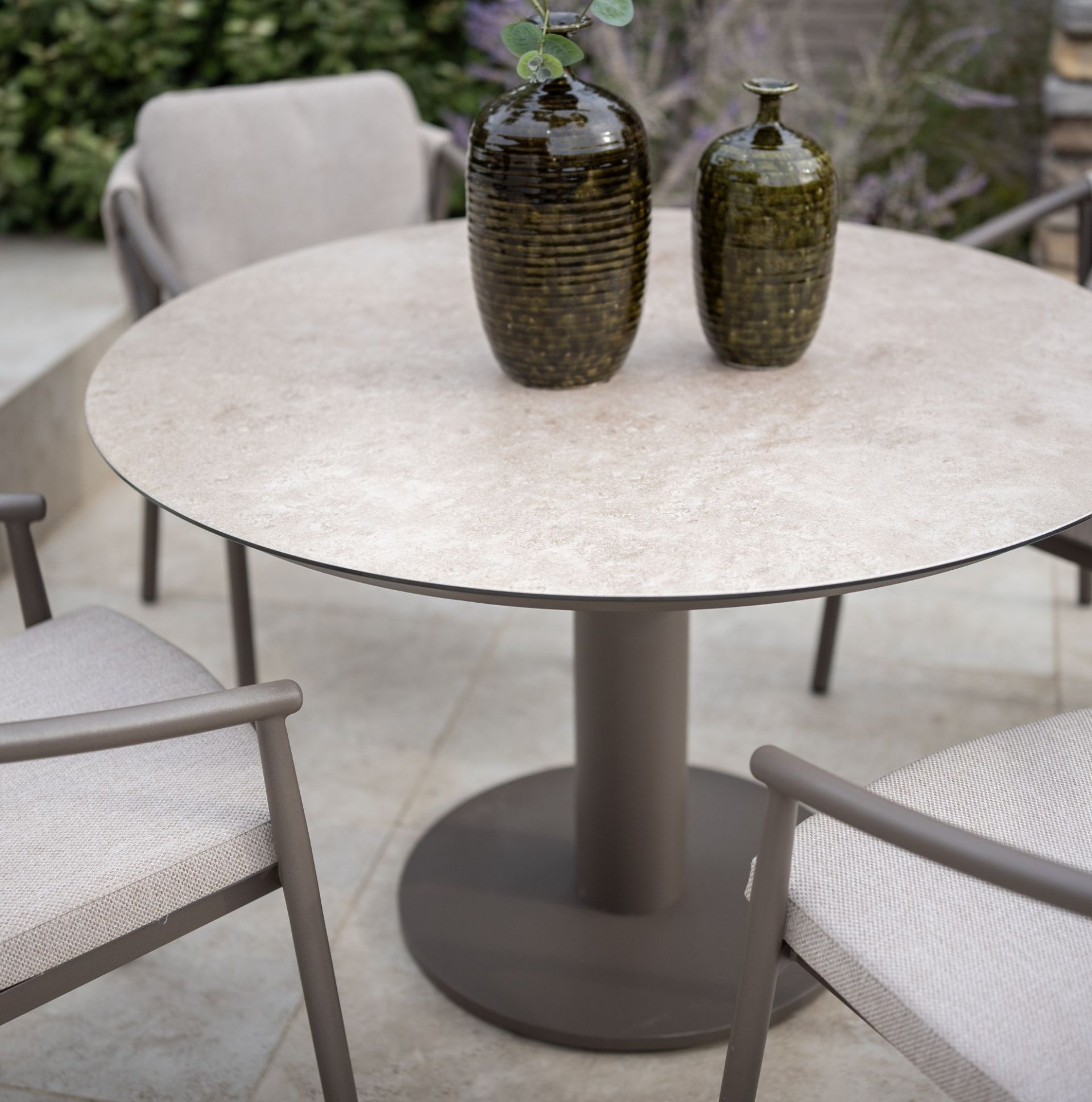 Where conversations flow naturally. The round shape of the Sarah table invites togetherness. Choose your height – dining or low dining – and enjoy eating, drinking, and relaxing in the garden.