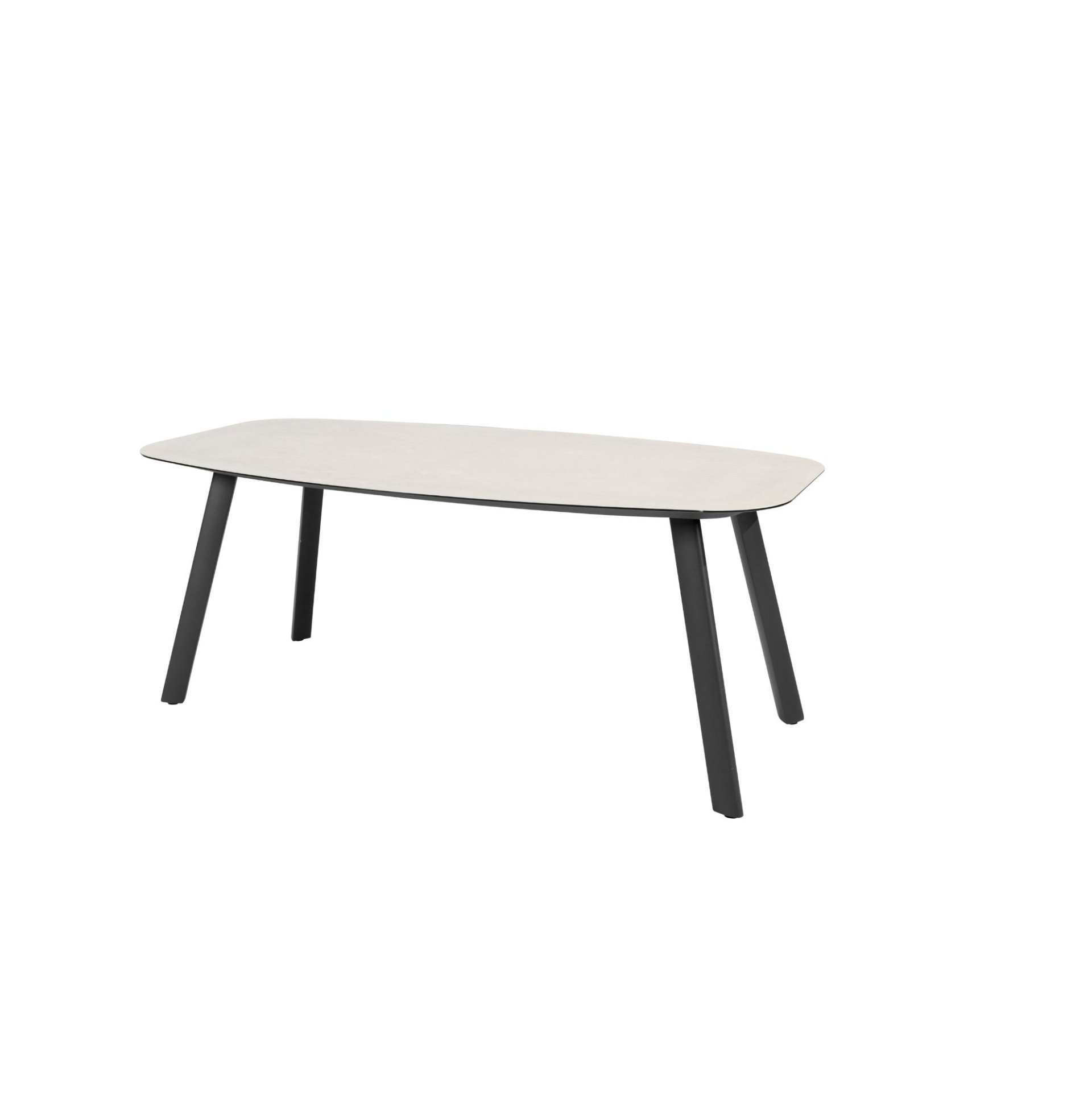 In perfect shape The printed ceramic table top of the Manolo table has a striking barrel shape. Choose between an anthracite or latte base and you'll have a table that matches many of our chairs. Manolo has everything it takes to become a top player in our table range.