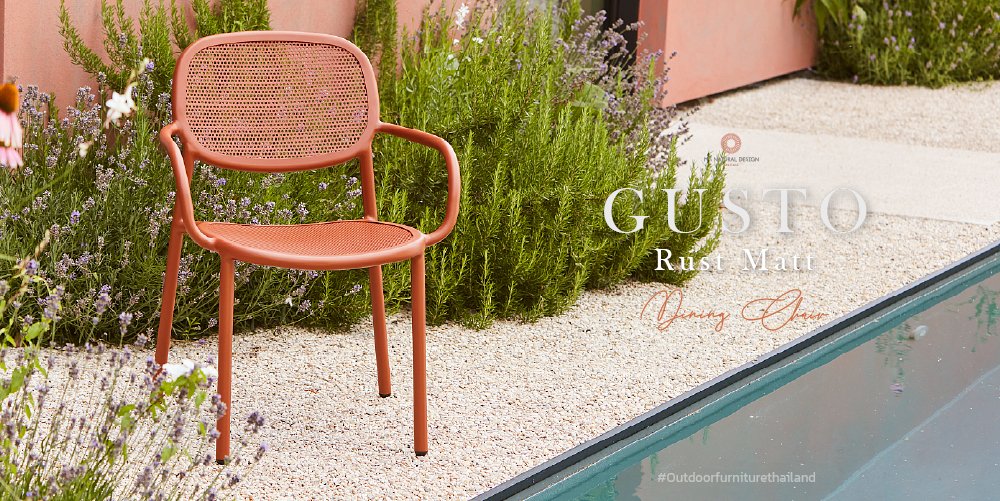 Gusto Stackable Armchair สี Rust Matt เป็นเก้าอี้เอ้าดอร์ที่ออกแบบมาเพื่อตอบโจทย์การใช้งานกลางแจ้งในชีวิตประจำวัน ทั้งในบ้านและพื้นที่เชิงพาณิชย์ เช่น คาเฟ่ ร้านอาหาร โรงแรม หรือพื้นที่รับรองกลางแจ้ง ดีไซน์เน้นความเรียบง่ายร่วมสมัย ให้ภาพลักษณ์โปร่ง สบายตา และไม่เทอะทะ เหมาะสำหรับการจัดวางร่วมกับโต๊ะอาหารเอ้าดอร์หรือใช้งานเป็นเก้าอี้รับรองทั่วไป