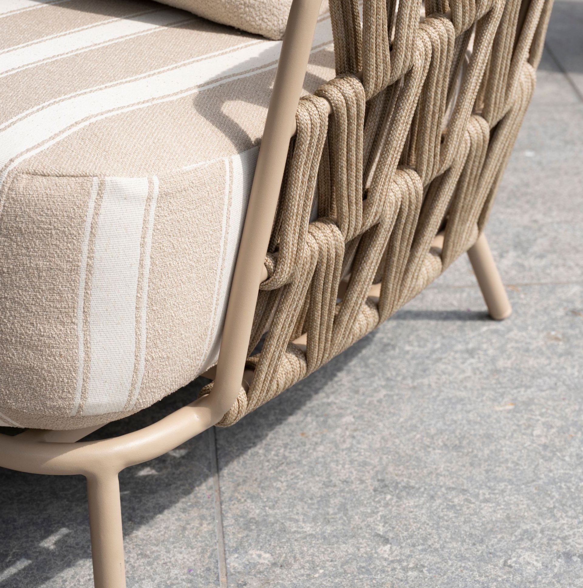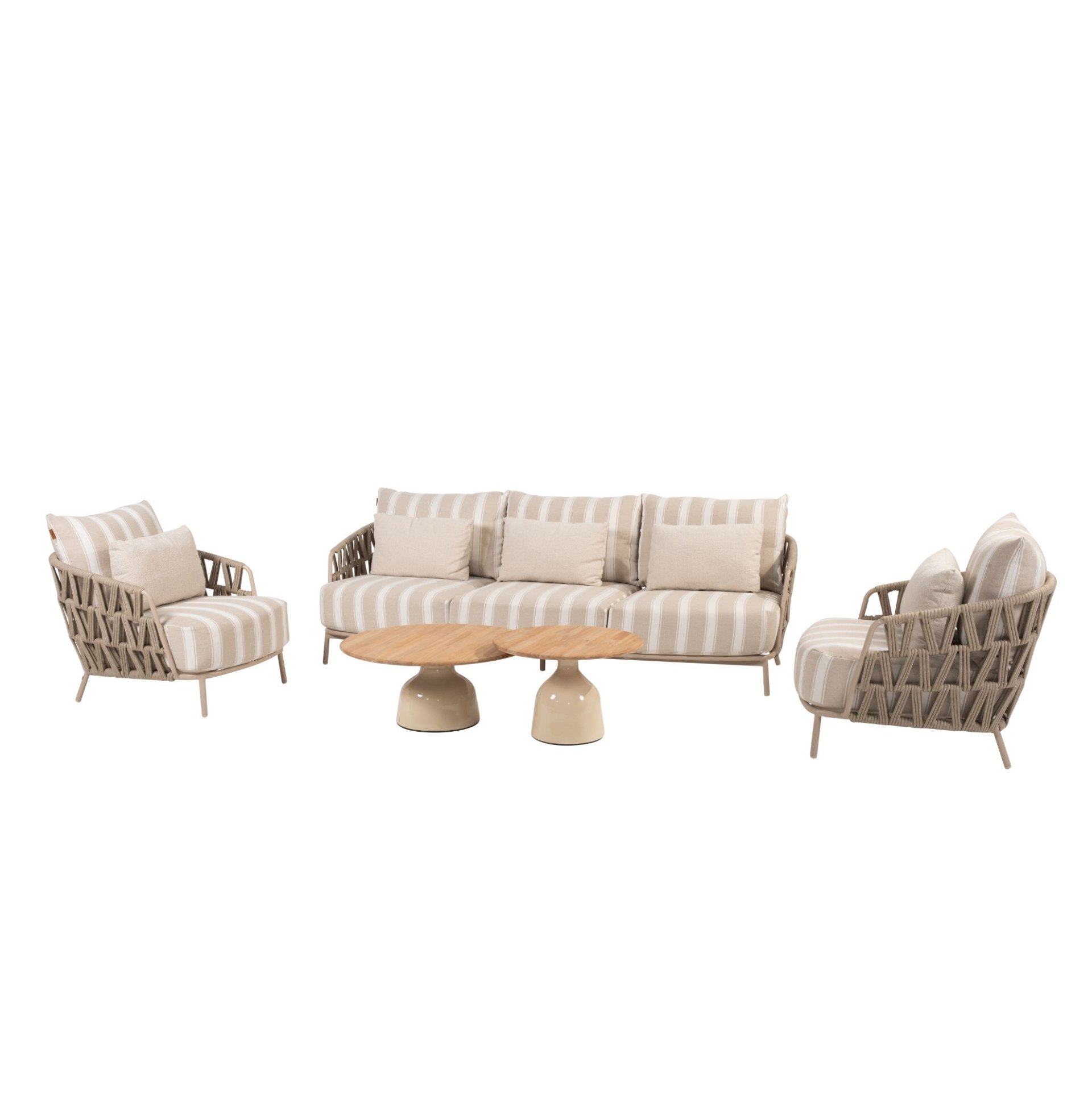 ดีไซน์ของ Beverly โดดเด่นสะดุดตาในสวนของคุณ เซ็ตนี้มาพร้อมรูปแบบที่เป็นเอกลักษณ์ ด้วยเบาะนั่งลายทางที่ดึงดูดสายตาได้ทันที ลวดลายเชือกไขว้รอบตัวที่นั่งช่วยเพิ่มความรู้สึกโมเดิร์น ขณะที่เบาะและโต๊ะที่เข้าชุดกันช่วยเติมเต็มลุคโดยรวมได้อย่างลงตัว ให้คุณได้เพลิดเพลินกับวันพักผ่อนในฤดูร้อนได้อย่างเต็มที่